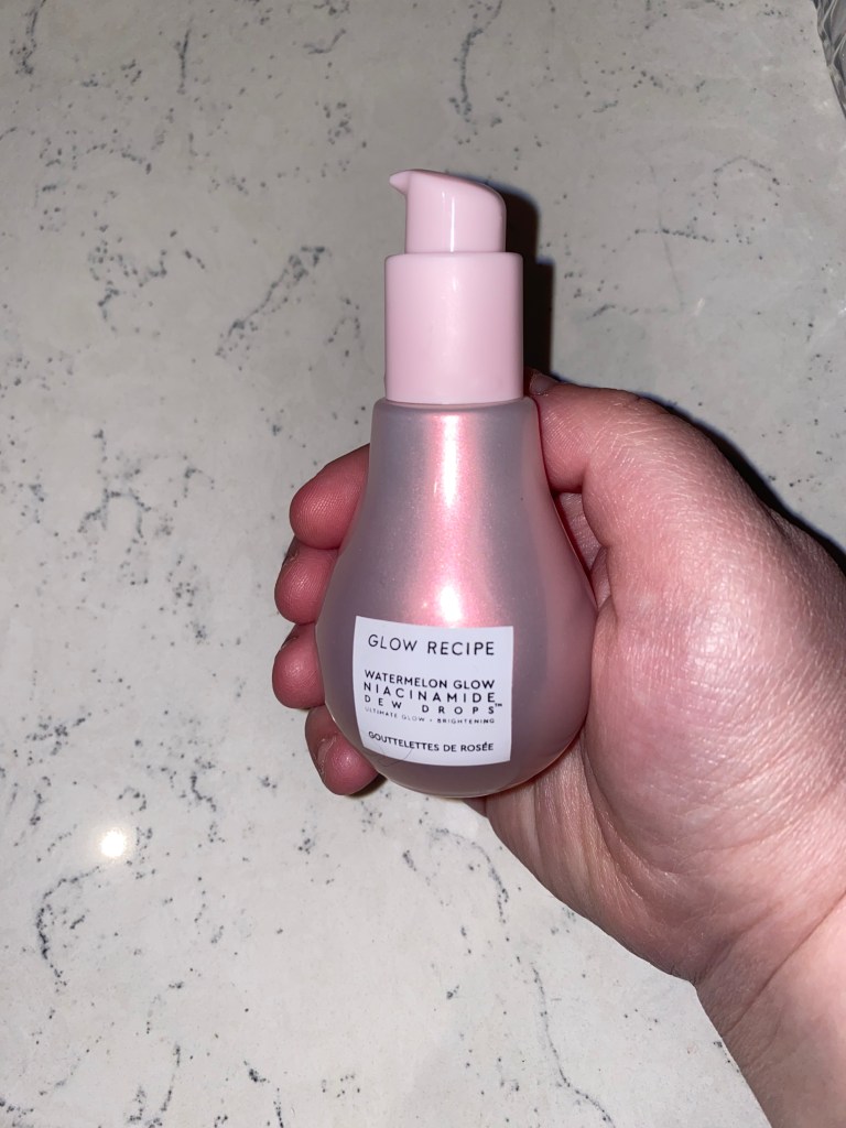 Once I’ve got my sunscreen on, depending on the day I will put on the Watermelon Dew Drops from Glow Recipe. I was very hesitant on buying these drops because I thought the fragrance would irritate my skin. The first time I tried them I thought they might’ve done that. As time went on I kept thinking about them, and it didn’t help that they were all over my for you page and my explore page on Instagram. I found an article from Allure, a very credible site, that said these dew drops help with redness and I decided that was enough to justify buying them. I use these as a primer rather than a serum because it can work as both makeup and skincare.